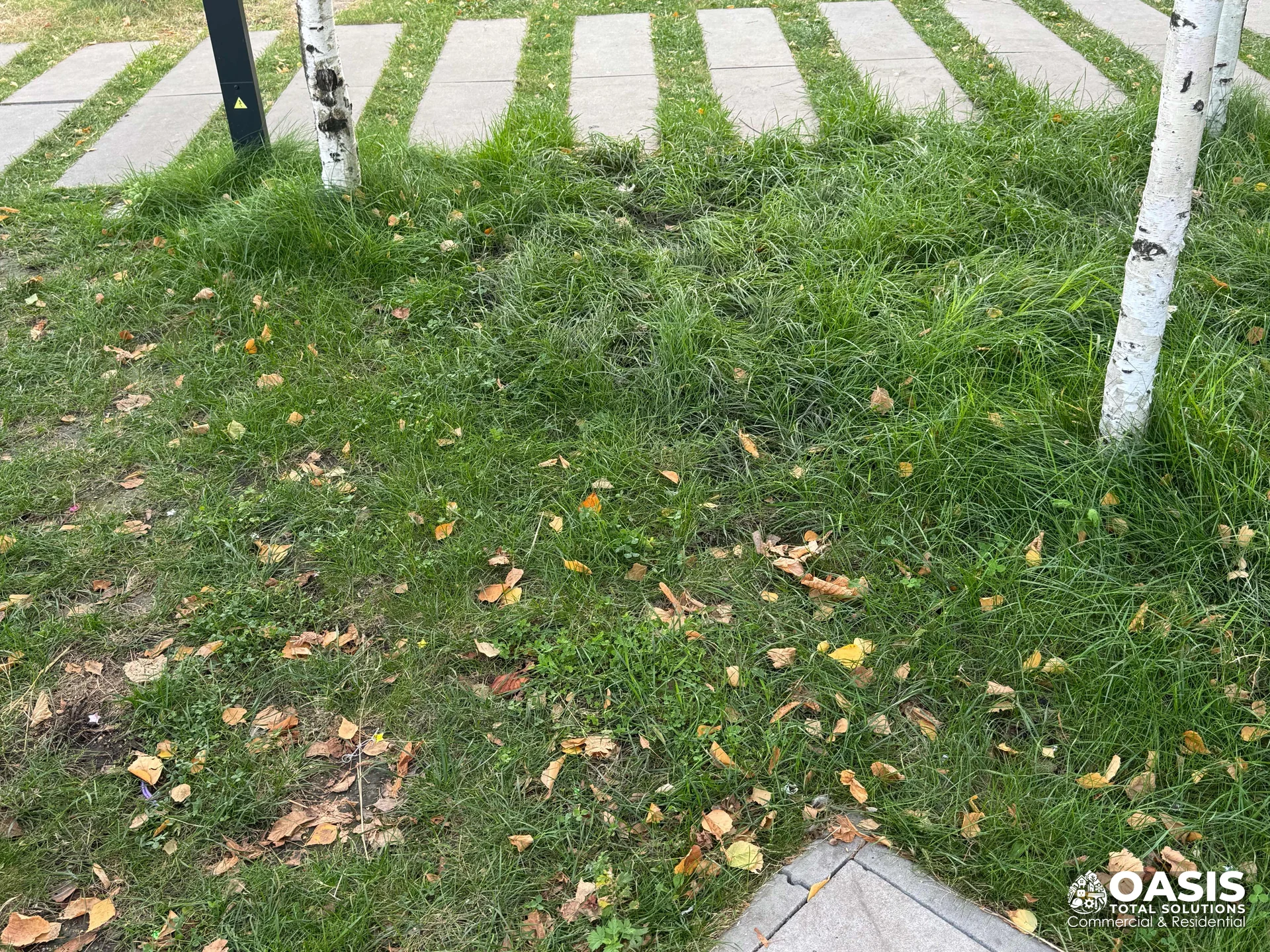 Mow/trim/edge/blow, bed care and litter patrol. Crew documents exceptions or hazards.