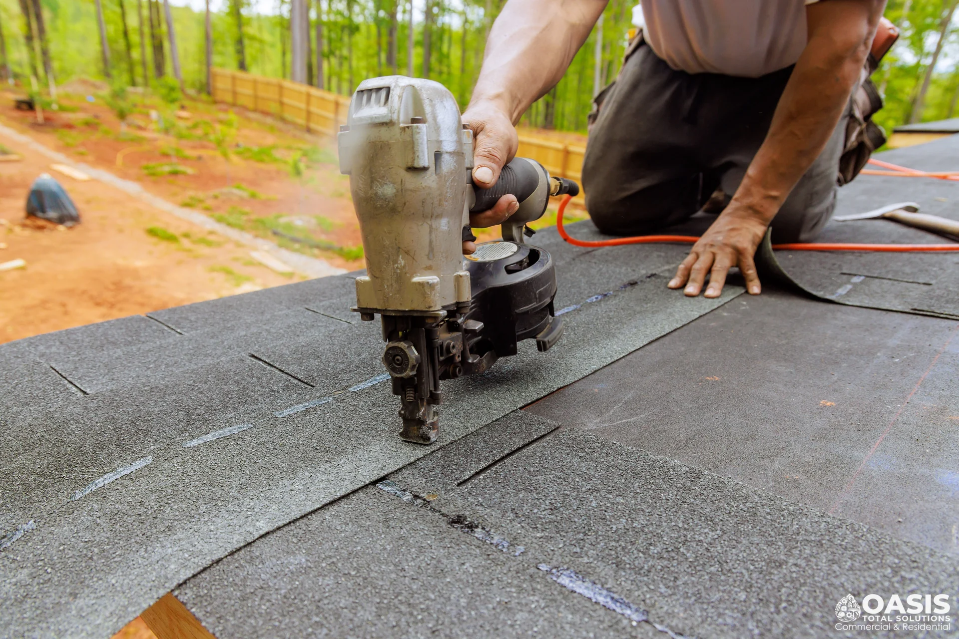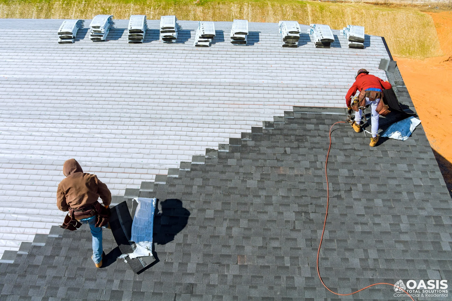 Asphalt shingles, EPDM/TPO for low-slope, and standing seam metal. Proper underlayments, flashing and penetrations.